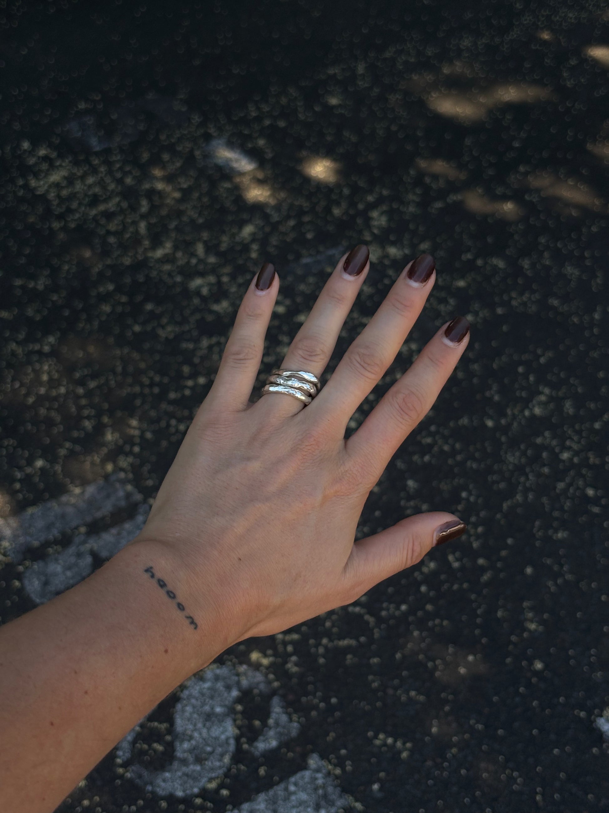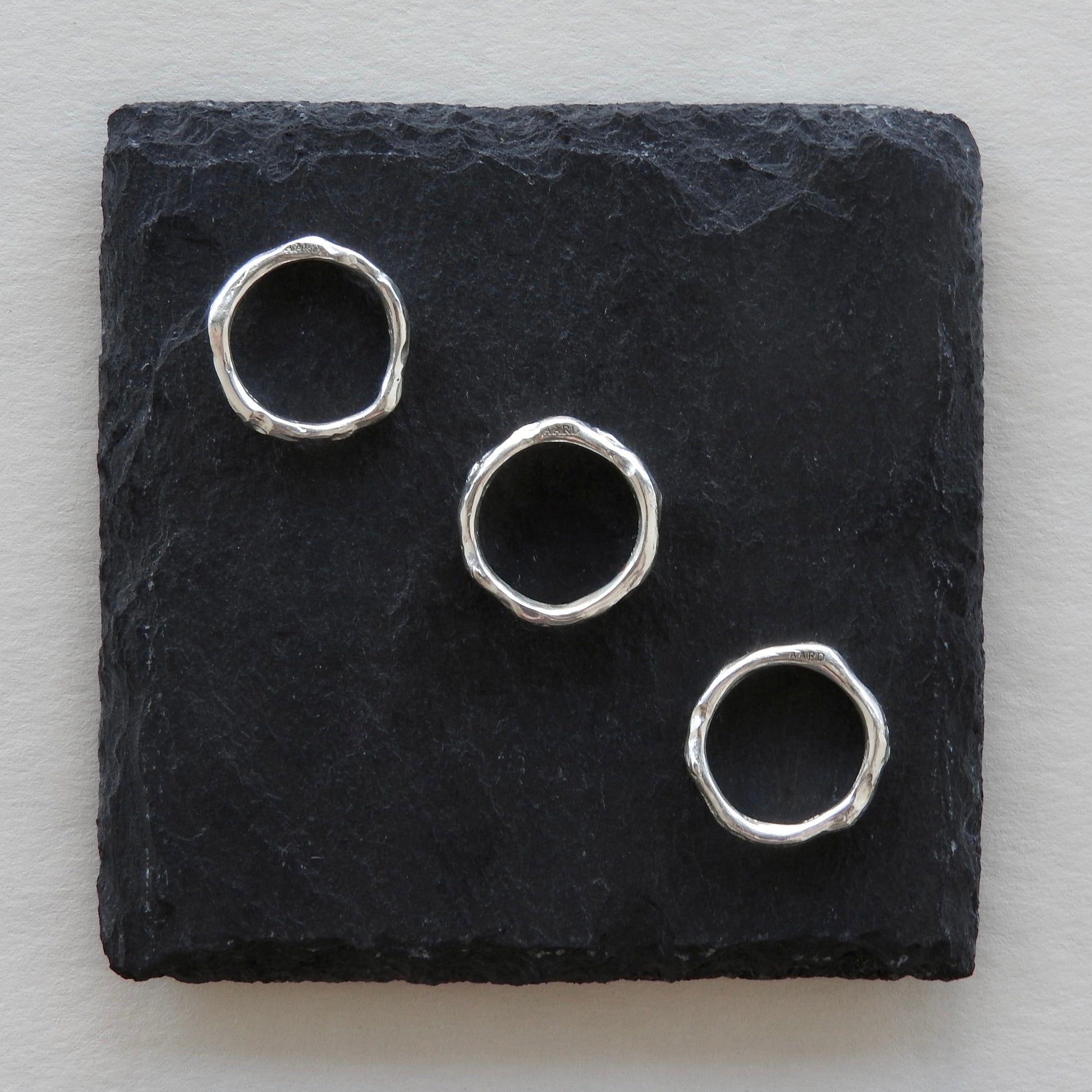 #004 stackers from AARD can be purchased solo or as a pack of 3! Designed to be worn stacked or spread over your fingers - style them however you want. You're the boss.