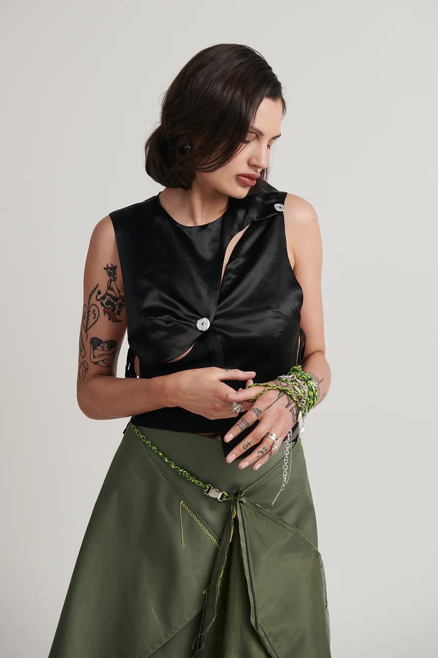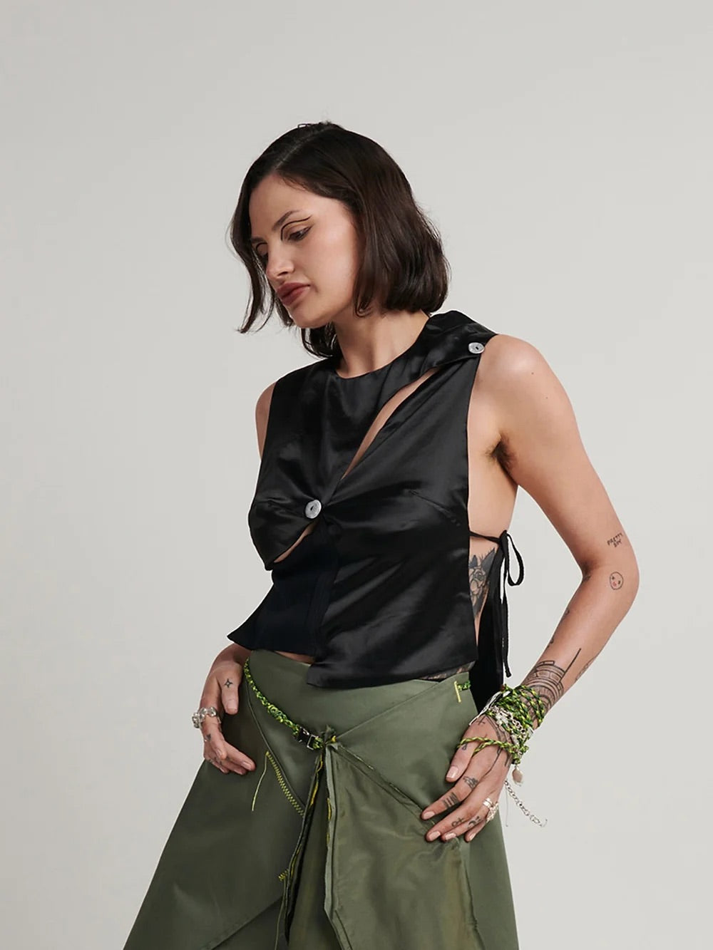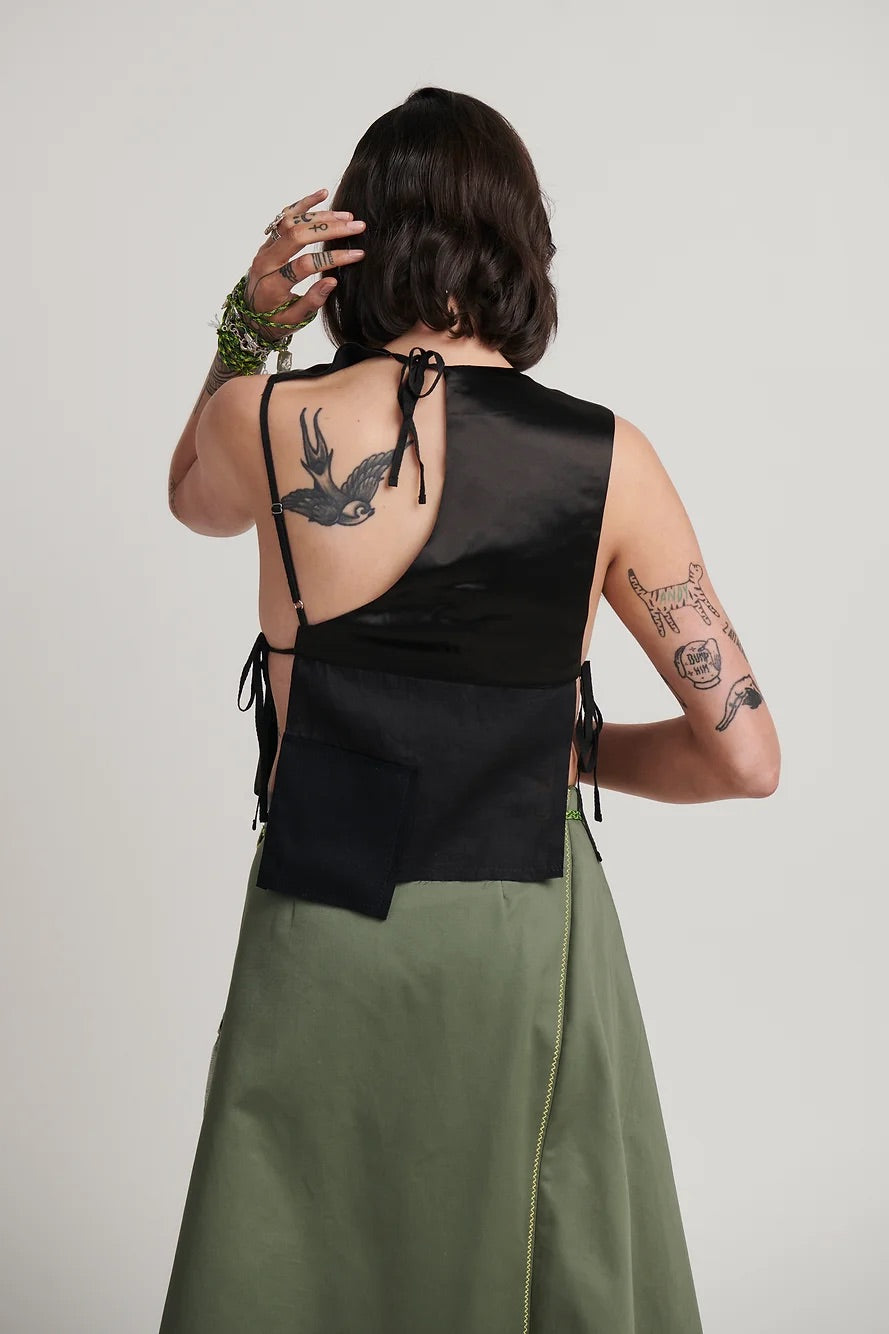 Our signature Chemisette is a one-of-a-kind statement piece made from textile remnants and offcuts. Taking reverence from a Victorian garment of the same name, we have created our contemporary take. Comprising an assemblage of natural luxurious fibres, it is cut like no other and constructed with extra fine attention to detail by our Melbourne-based manufacturer.