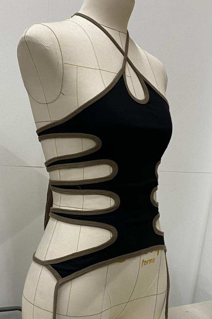 Made from a supportive but stretchy, thick Cotton/Elastane, the Strap-On Top is fully adjustable with 5 long straps that wrap around the body.